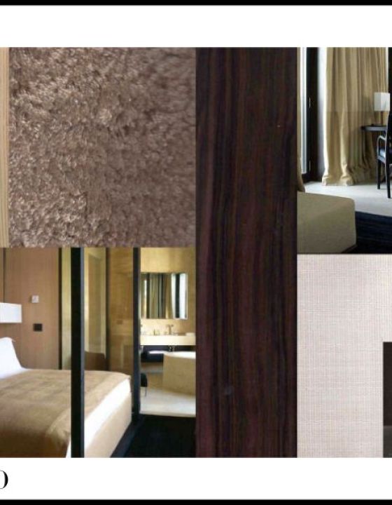 Elemente der klassischen Natursteinfassade werden nach Innen gezogen, das Außen wird somit im Inneren widergespiegelt. Möbel und Materialien sind in Braun und Weißtönen gehalten.