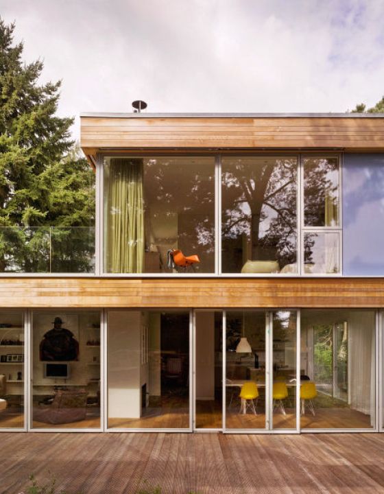 Das Haus Jacobs entstand aus dem Wunsch heraus, ein modernes klassisches Haus mit viel Glas und Holz als Komplett-Lösung für anspruchsvolle Bauherren anzubieten. Das Haus wurde aus dem Innenraum entwickelt und bietet viel Freiraum, Stauraum und den Einklang mit der Natur.